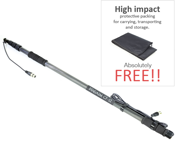 PROAIM™ introduces its professional & precision balanced boom pole for location recordings. It is 12ft long boom pole constructed from carbon fibre that keeps the boom pole robust yet light enough to hold comfortably during long recordings. It is so designed that it can be smoothly & quickly expanded or contracted from 3ft to 12ft. It has soft padded hand grips that provide comfort and also isolates noise when holding the boom pole. This audio unit incorporates a direct XLR connection to the boom pole. It is internally wired that eliminates the hassle of messy cables or the need for extra connections. Our new version of Carbon fiber boom pole comes with 3/8”-16 screw on the first end of the pole to attach microphone blimps.