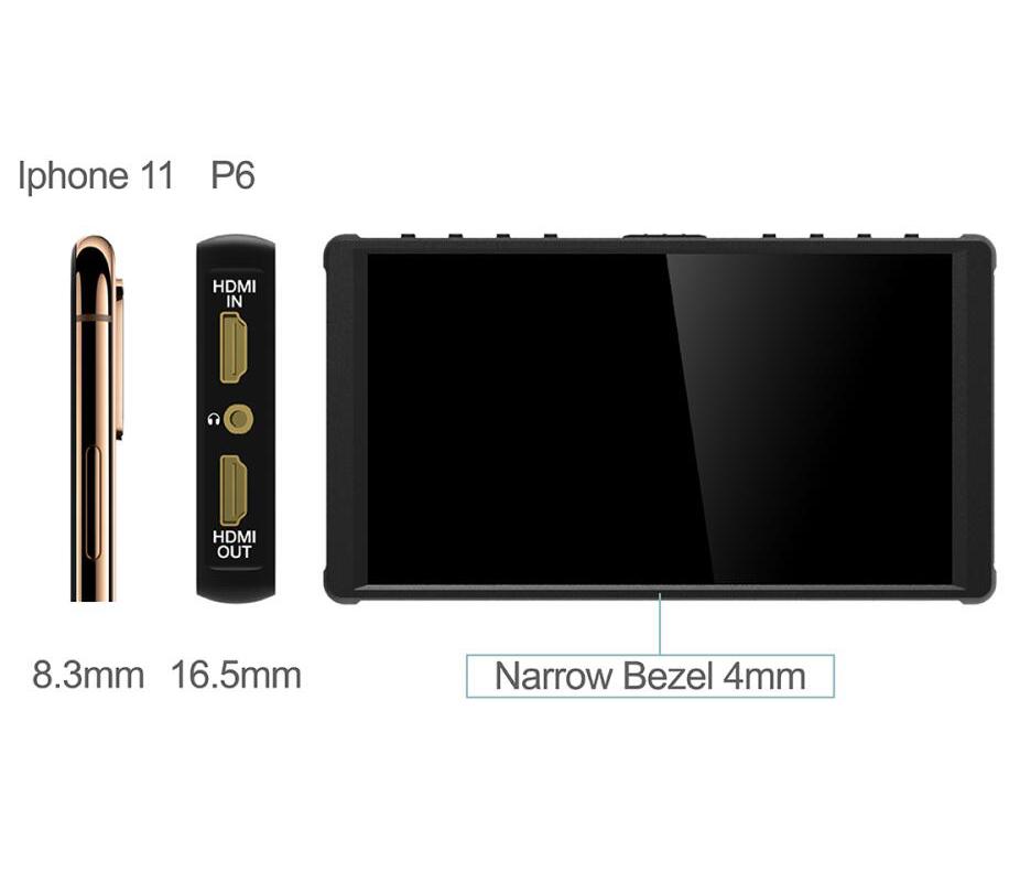 【Slim with Narrow Bezels】P6 is a compact and portable LUT monitor. It is 16.5mm thick and weighs only 130g. It can store up to 20 LUT files that you can add and remove via the USB port.