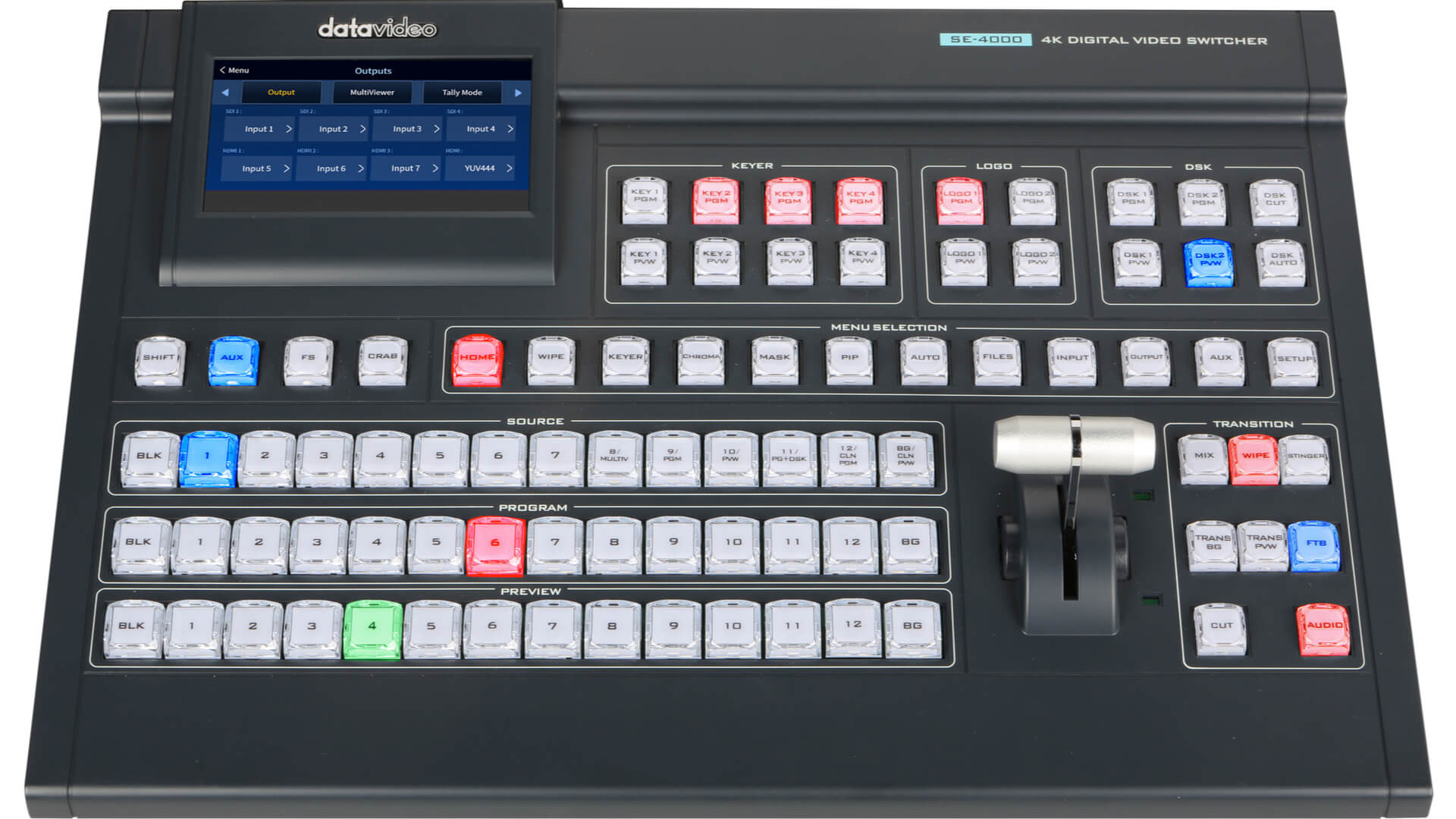 SE-4000 重量輕,主機可安裝在標準 19 吋機架上,控制鍵盤可放置在平面上或內建在導播車裡。SE- 4000 導播機專為製作大型現場活動而設計,採用直觀且可靠的實體按鍵。